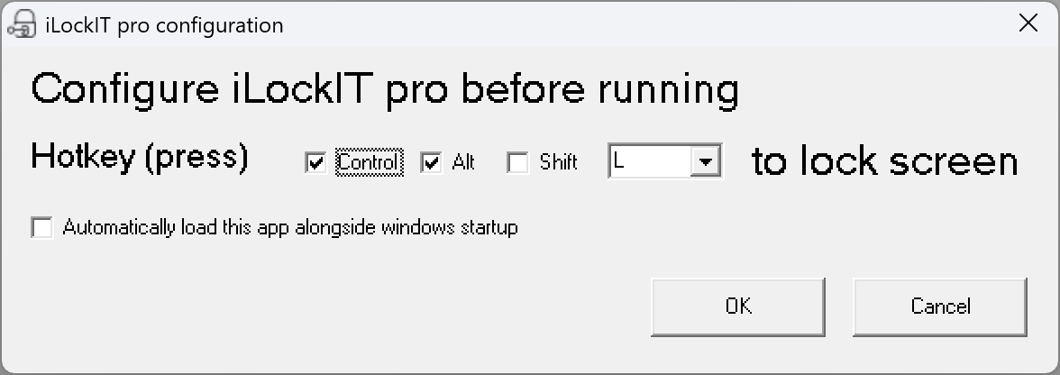 If you’re on a time constraint and/or are security conscious when you leave your PC, then iLockIT Pro is for you! iLockIT Pro is free software for Microsoft Windows (XP+). It sits quietly in the Windows system tray, waiting for you to press a system-wide hotkey. The default hotkey is configured as Ctrl+Alt+L, but you can configure that hotkey in seconds to be whatever you want! (Aka Ctrl+Alt+whatever you want.) When that system-wide hotkey is pressed, it locks your PC instantly using the standard Windows lock screen!