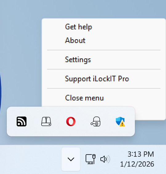 iLockIT Pro in the system tray :